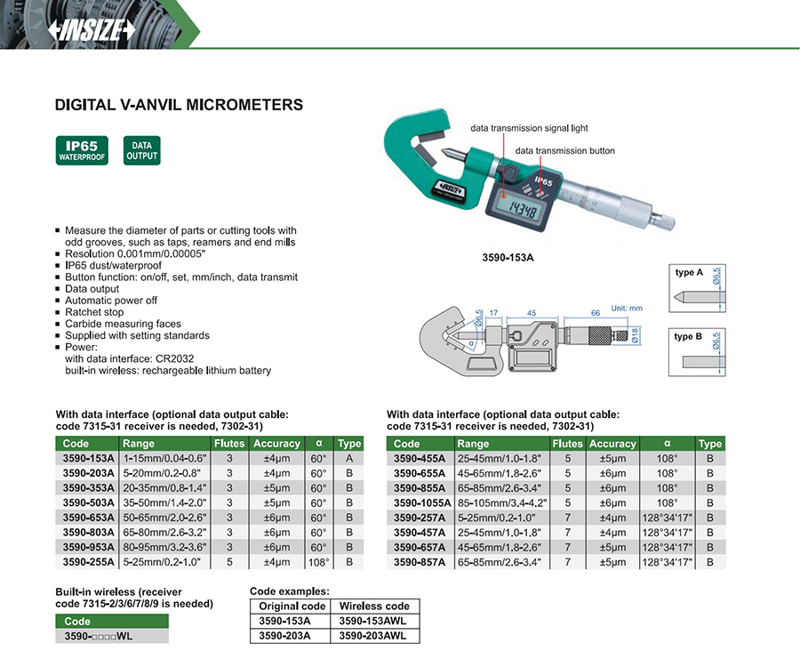 3590-653AWL 50-65mm/2.0-2.6" ±6μm 0.001mm/0.00005" built-in wireless 3