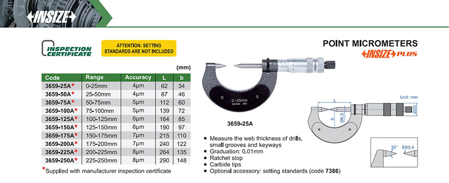 | 3659-25A | 0-25mm | 4μm | 0.01mm |