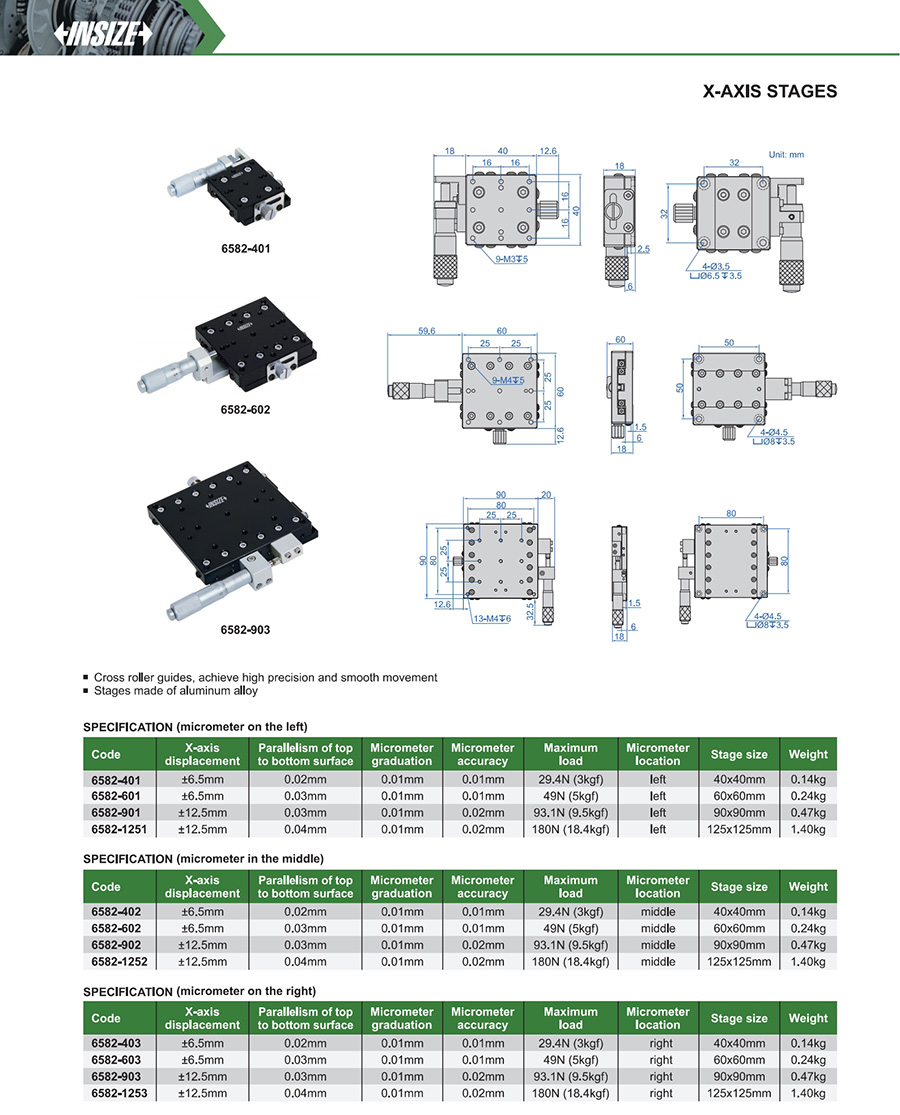 6582-403 0.02mm ±6.5mm 0.01mm 0.01mm 40x40mm