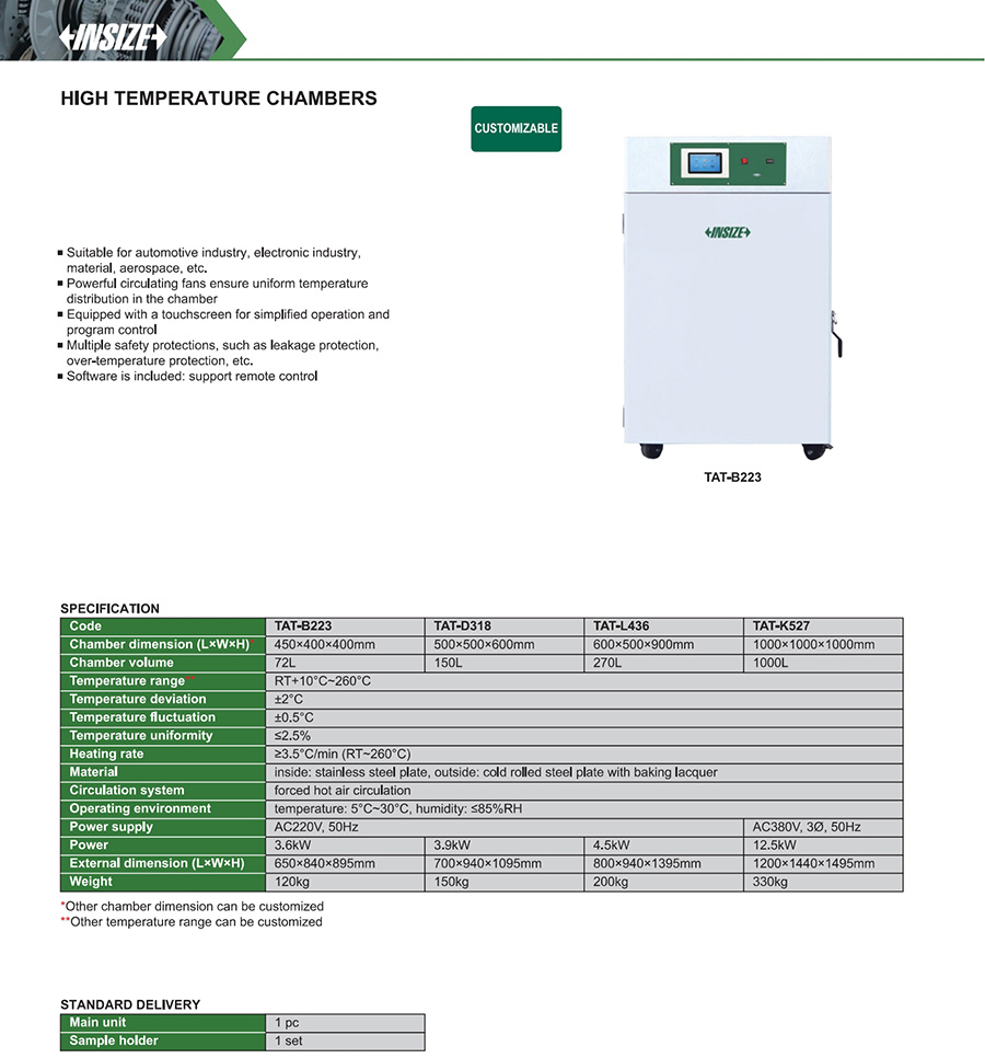 | TAT-B223 | RT+10°C~260°C | 72L |