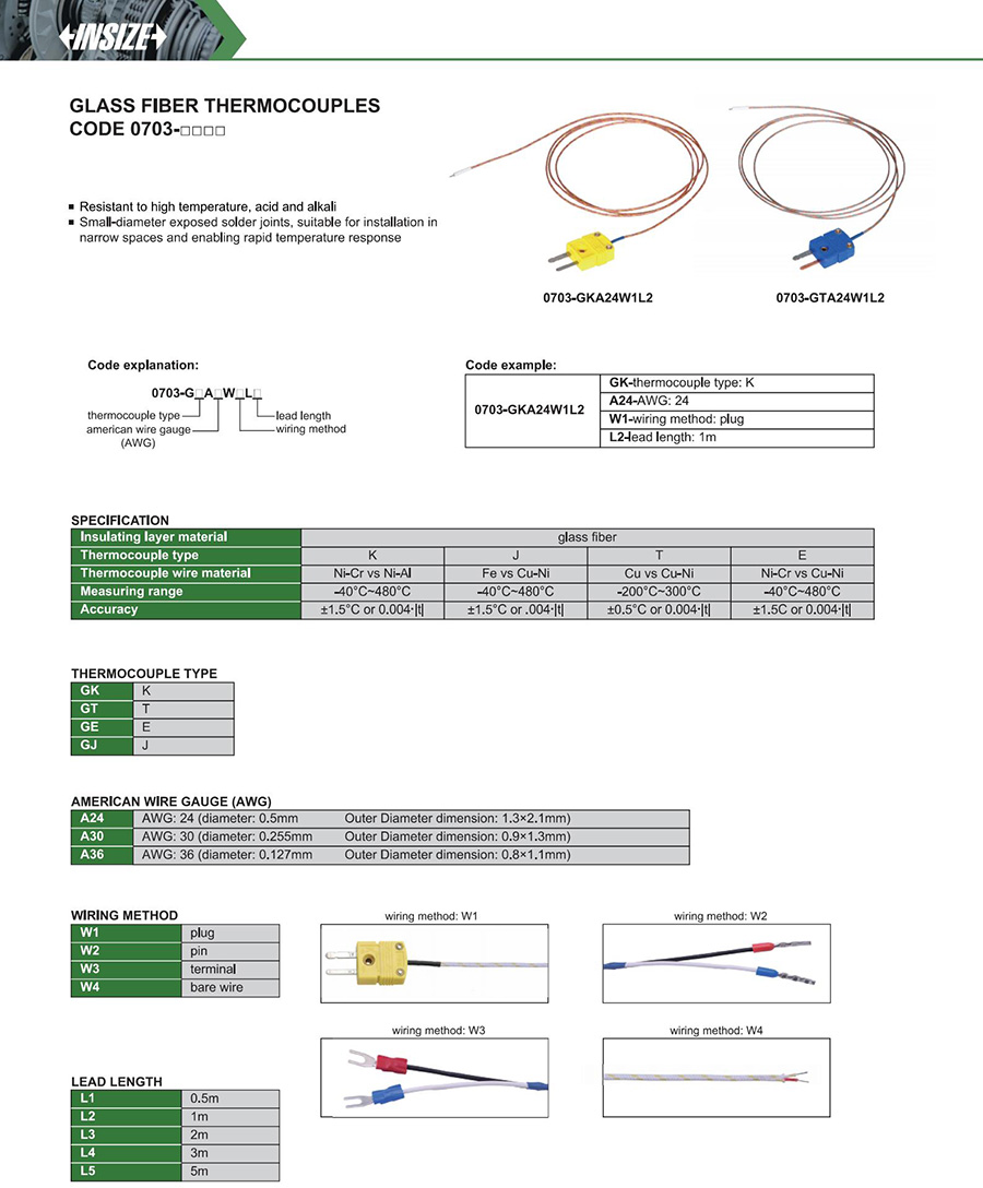 | 0703-□□ | E | thermocouple | -40°C~480°C | ±1.5°C or 0.004∙|t| |