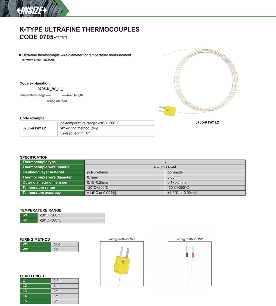 | 0705-□□ | K | thermocouple | -20°C~300°C | ±1.5°C or 0.004∙|t| |