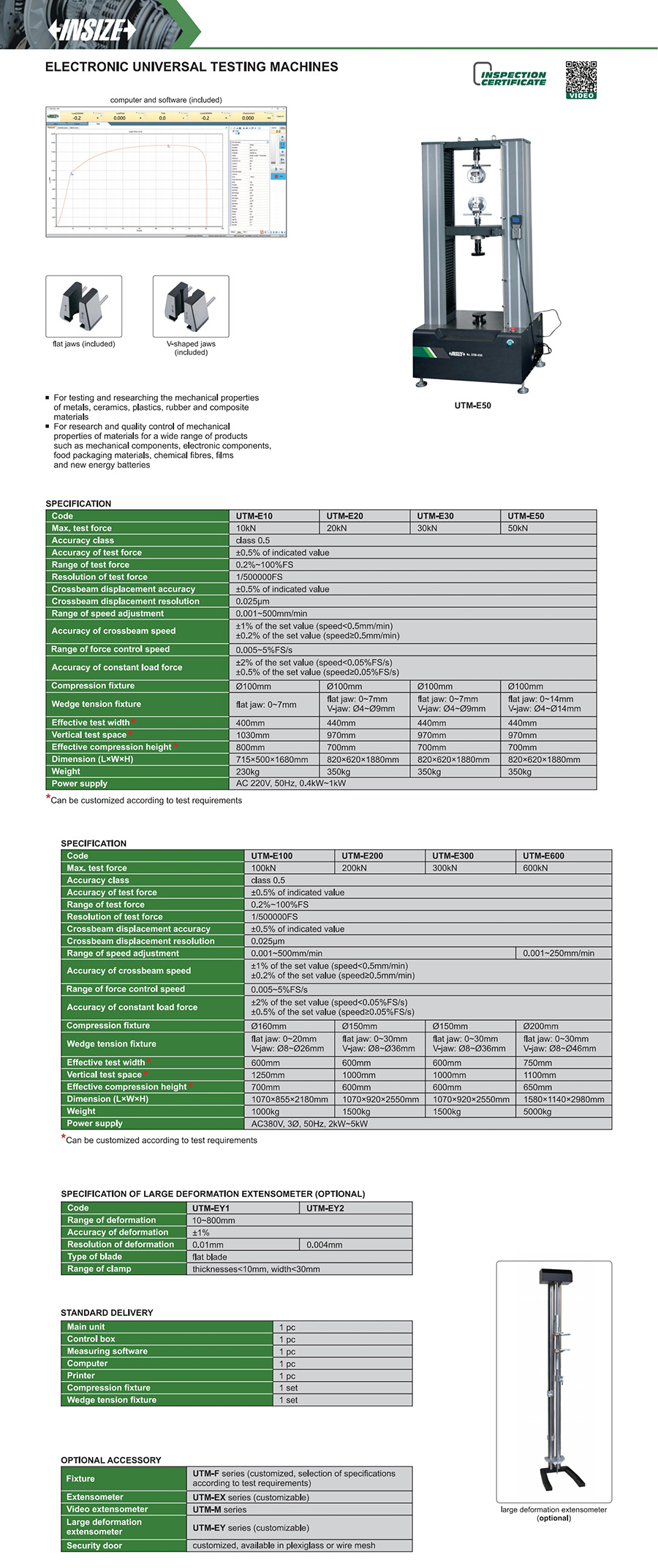 | UTM-E50 | electronic | 50kN | ±0.5% |