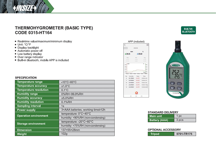 | 0315-HT164 | digital | external | ±1.0°C | 0%RH~99.9%RH | ±5.0%RH | yes | -10°C~60°C |