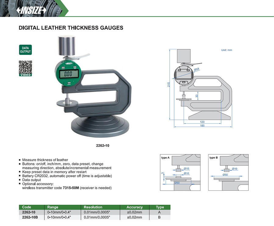 | 2262-10B | 0-10mm/0-0.4" | ±0.02mm | 0.01mm/0.0005" |