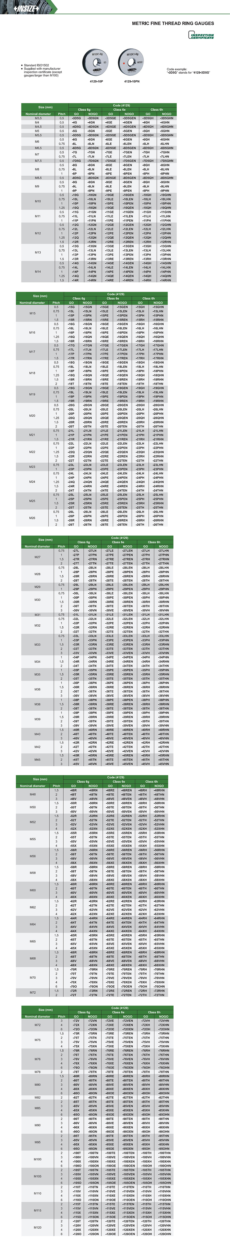Supplied with manufacturer inspection certificate (except gauges larger than M100)