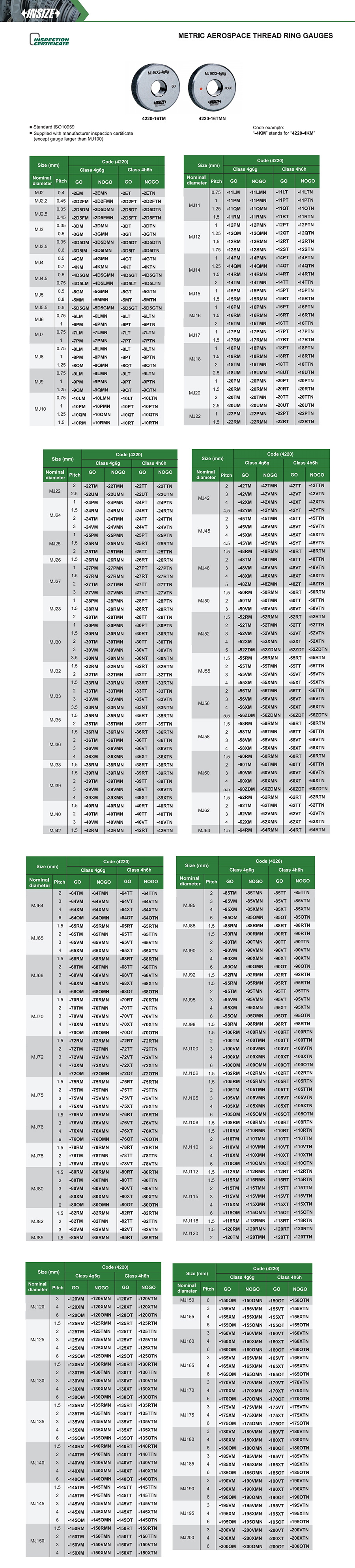 Supplied with manufacturer inspection certificate (except gauge larger than MJ100)