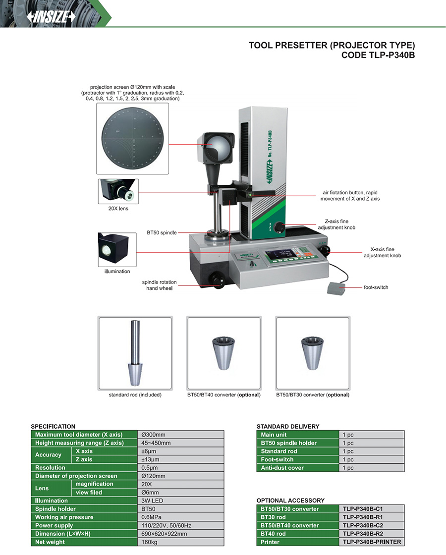 TLP-P340B 0.5μm Ø300mm 45~450mm ±6μm ±13μm