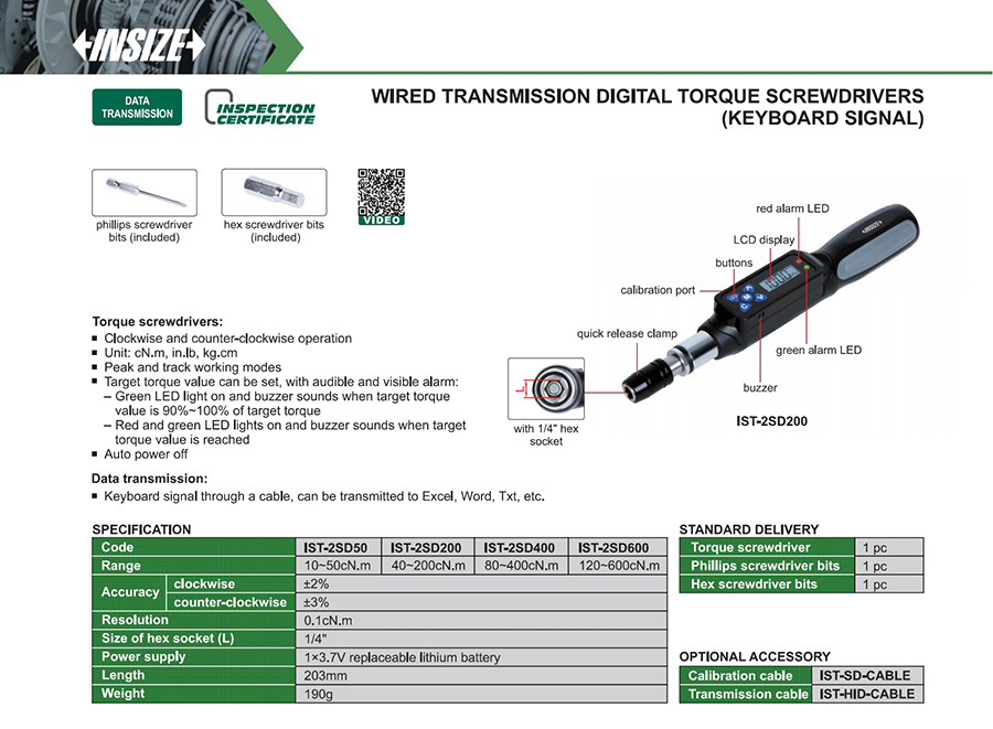 | IST-2SD200 | digital | 40~200cN.m | wired transmission (keyboard signal) | digital display |
