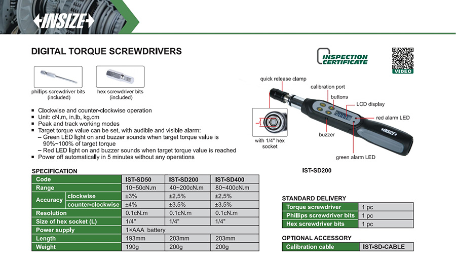 | IST-SD200 | digital | 40~200cN.m | no transmission | digital display |