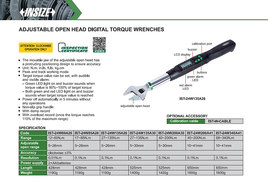 IST-24W135A30 digital 27~135N.m no transmission digital display adjustable open head