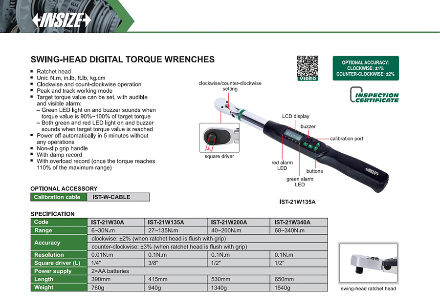 | IST-21W30A | digital | 6~30N.m | no transmission | digital display | swing ratchet head |