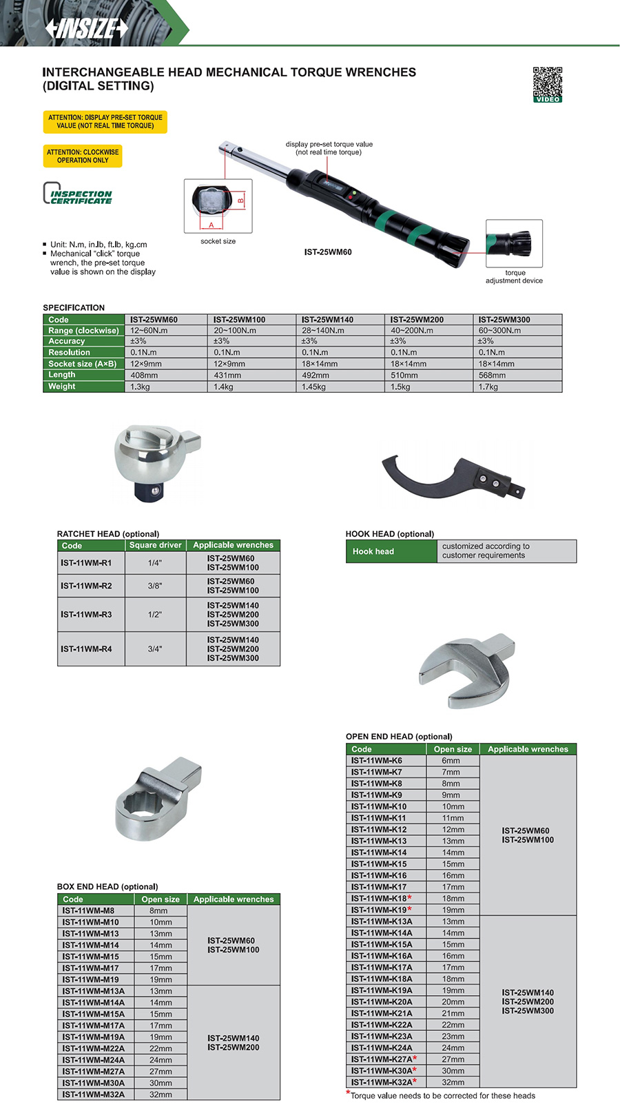 IST-25WM300 mechanical preset 60~300N.m digital display interchangeable head