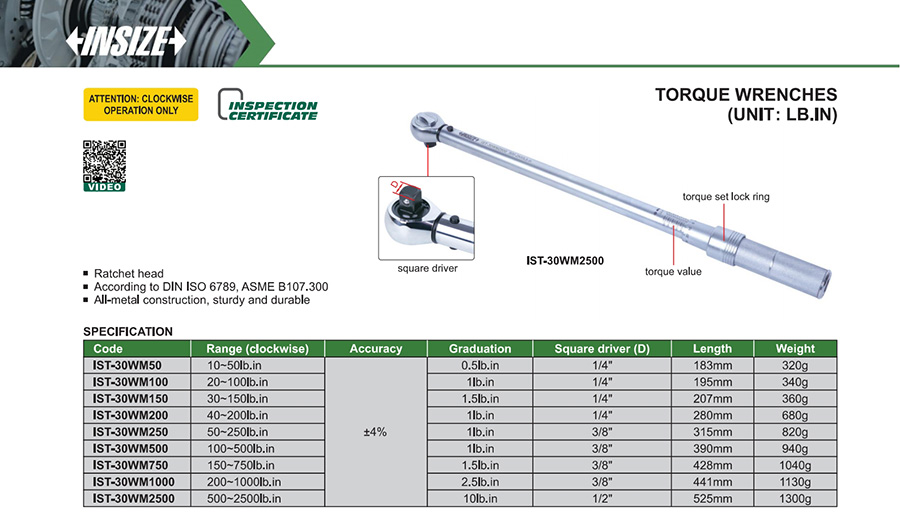 IST-30WM250 mechanical preset 50~250lb.in engraved-line fixed ratchet head