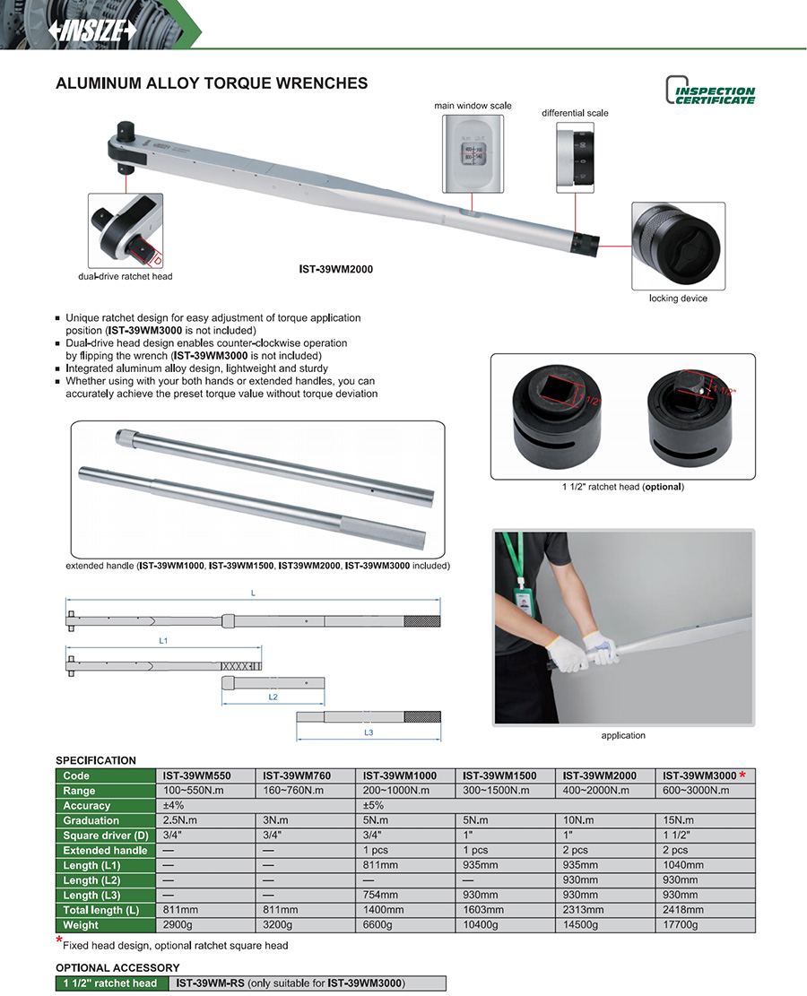 IST-39WM1500 mechanical preset 300~1500N.m window design dual-driver ratchet head