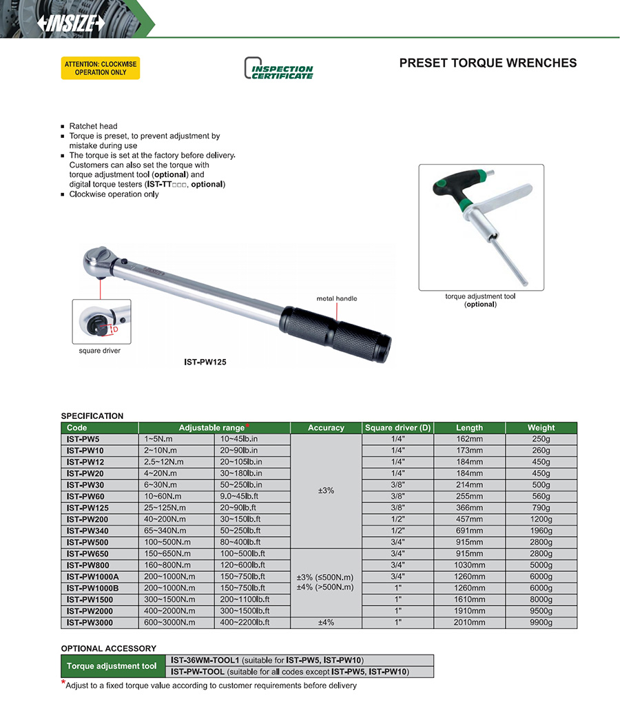 IST-PW125 mechanical preset 25~125N.m, 20~90lb.ft preset fixed-value fixed ratchet head