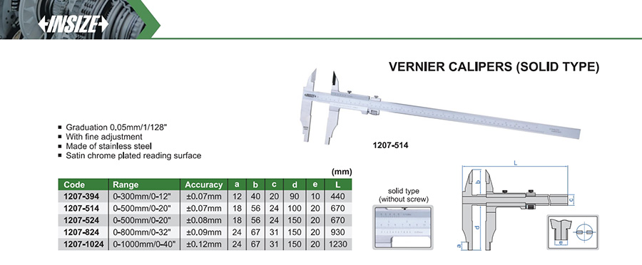| 1207-514 | 0-500mm/0-20" | ±0.07mm | 0.05mm/1/128" |