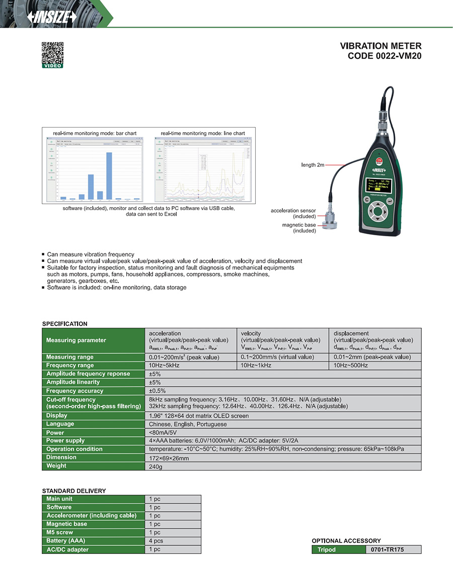 Can measure virtual value/peak value/peak-peak value of acceleration, velocity and displacement