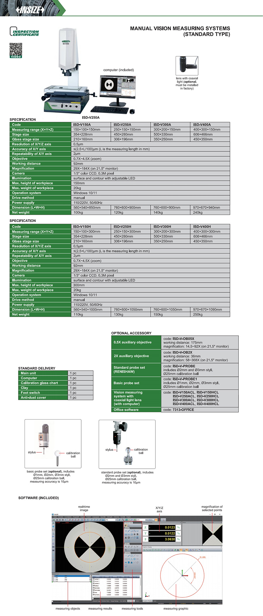 ISD-V300A 300×200×150mm ≤(2.5+L/100)µm 0.5µm 2µm 29X~184X (on 21.5" monitor) 20kg