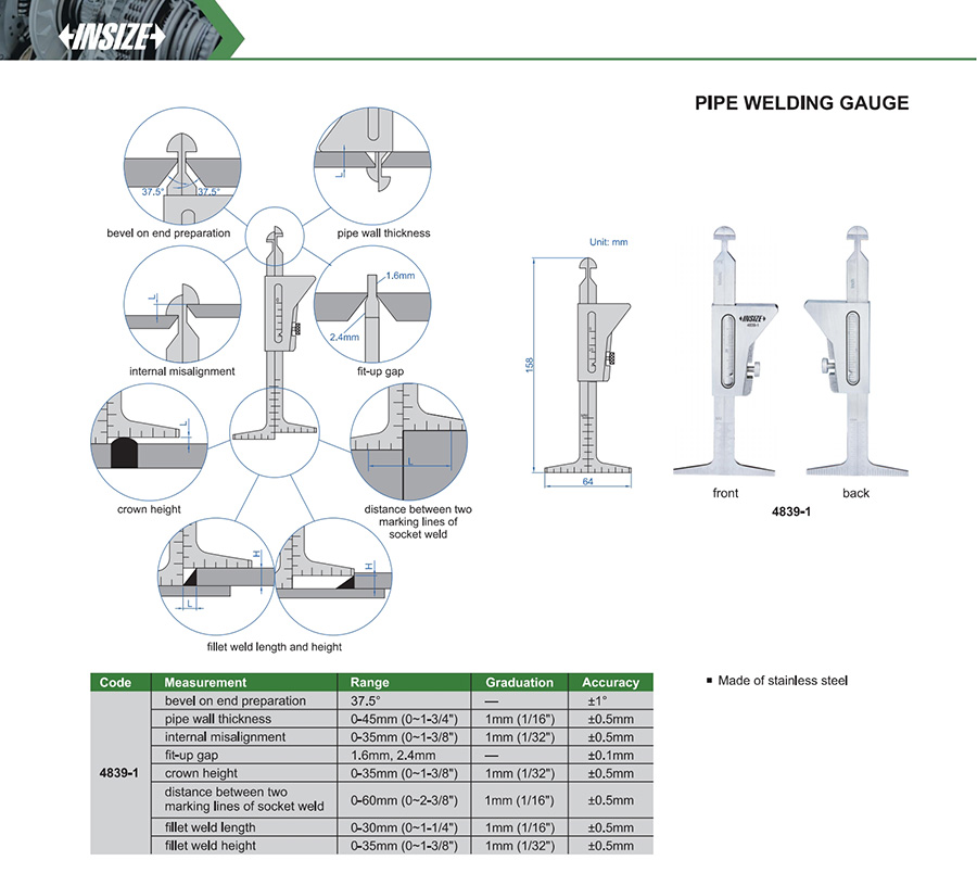 | 4839-1 | 0-35mm (0~1-3/8") | ±0.5mm | 1mm (1/32") | fillet weld height |