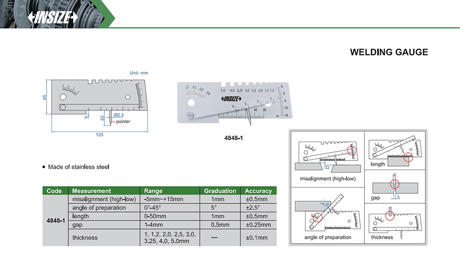 | Code | Range | Accuracy | Graduation | Measurement |