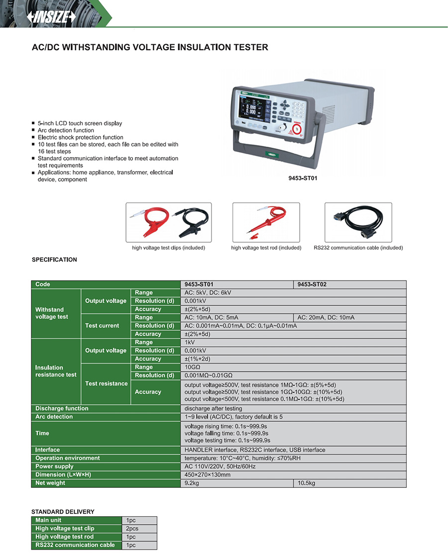 | 9453-ST02 | 5kV | 20mА | 6kV | 10mА | 50V~1000V | 10GΩ |