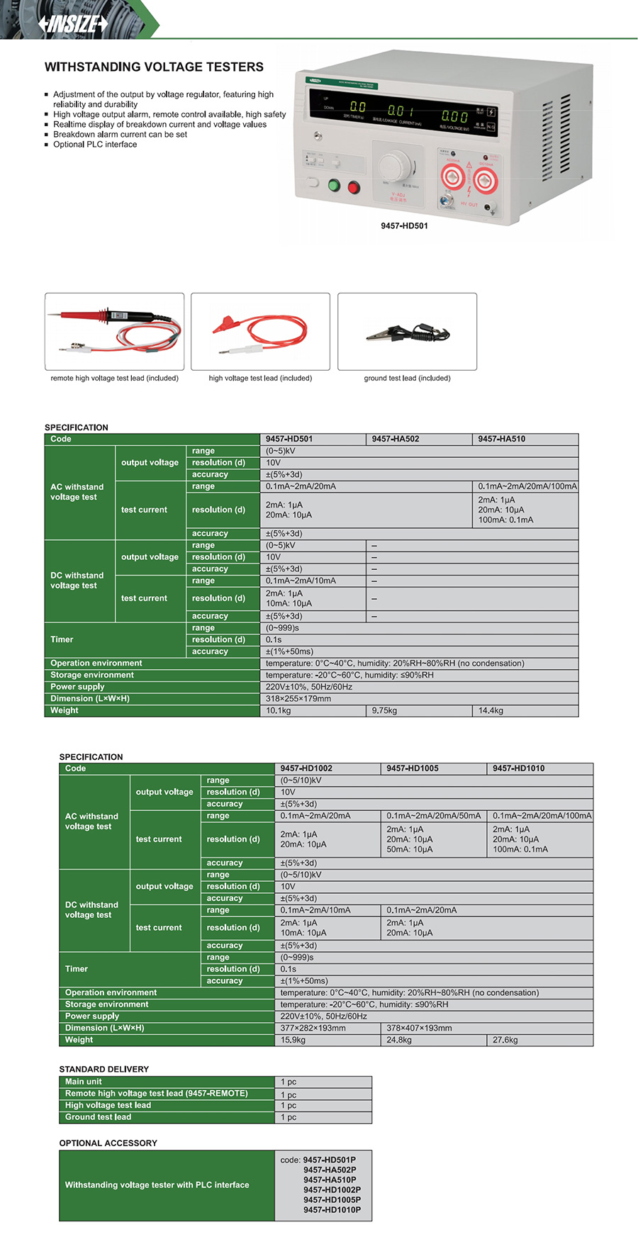 9457-HD1010 5/10kV 2mA/20mA/100mA 5/10kV 2mA/20mA