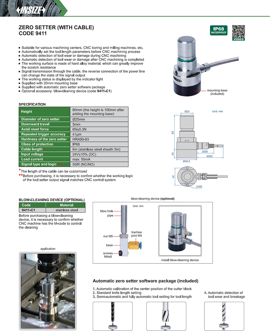 | 9411 | with cable | +Z | 6N±0.3N | ≤1μm | HRA90-93 | IP68 |
